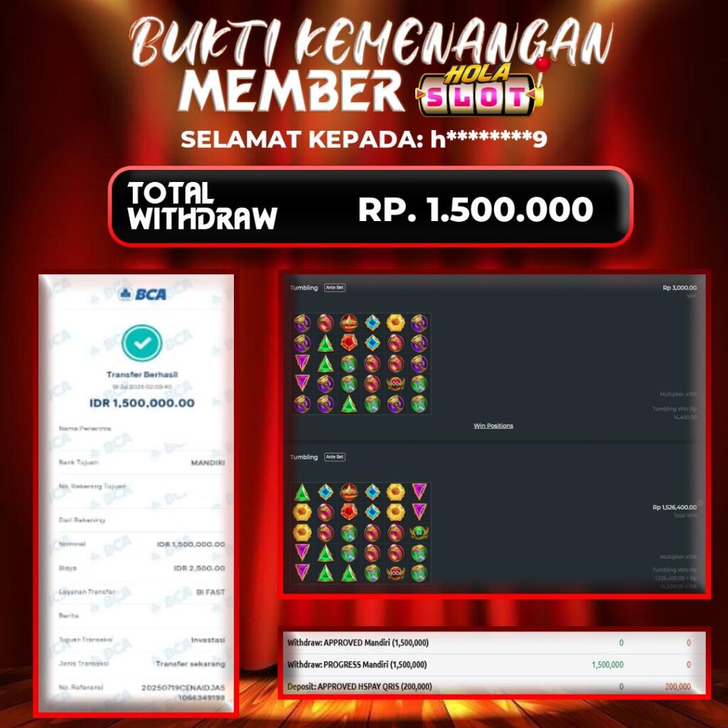 Selama bermain di HOLASLOT, banyak pemain telah meraih kemenangan besar yang dibagikan melalui halaman testimoni kami. Oleh karena itu, testimoni ini menjadi bukti nyata bahwa peluang menang sangat terbuka bagi siapa saja. Selanjutnya, dengan banyaknya promo menarik yang tersedia setiap hari, para pemain memiliki kesempatan lebih besar untuk meraih hasil maksimal. Sementara itu, berbagai bonus seperti cashback, free spin, dan turnamen berhadiah terus diluncurkan untuk menambah keseruan. Sebagai kesimpulan, HOLASLOT bukan hanya tempat bermain game online, tapi juga ladang keberuntungan yang layak Anda coba sekarang juga!.